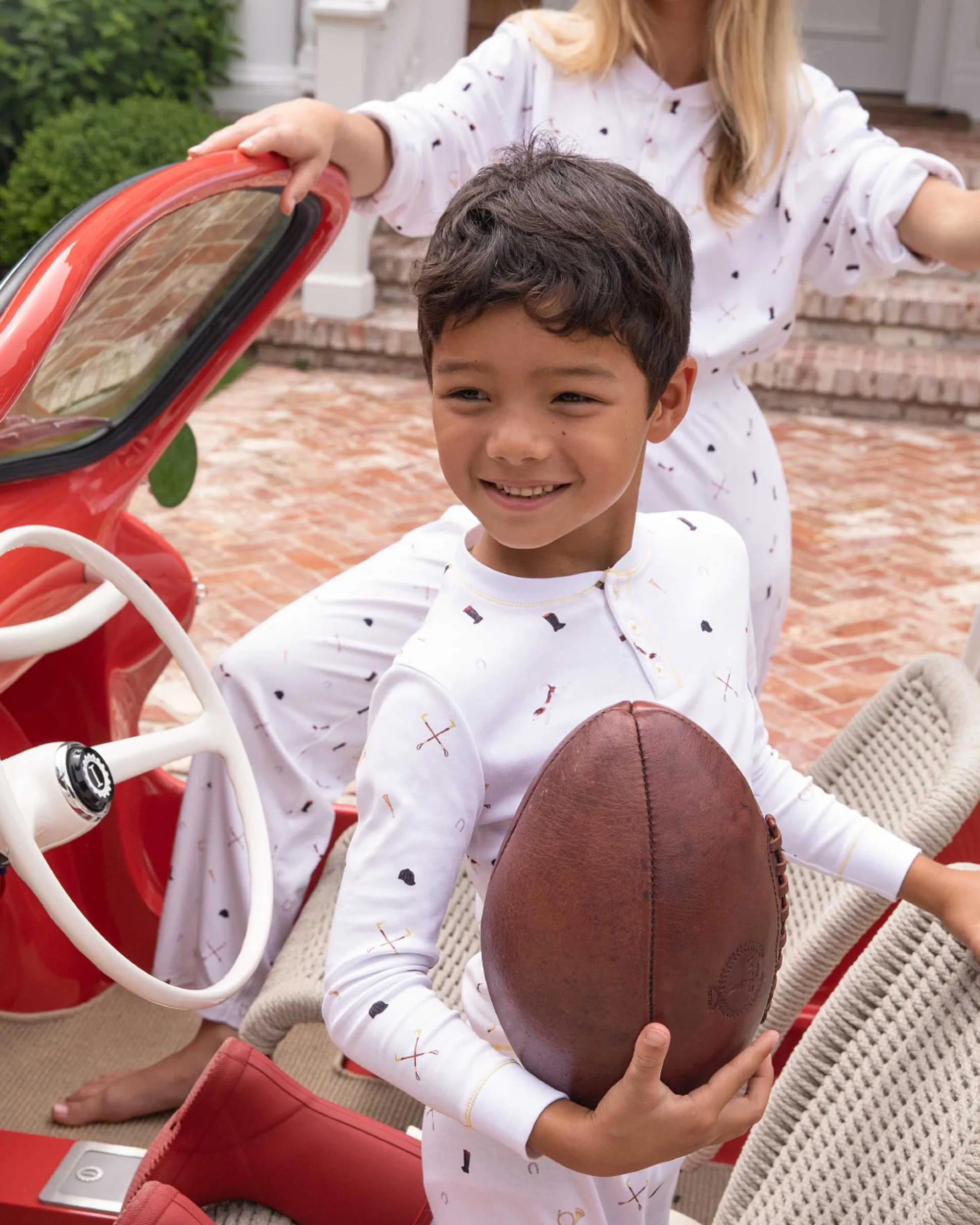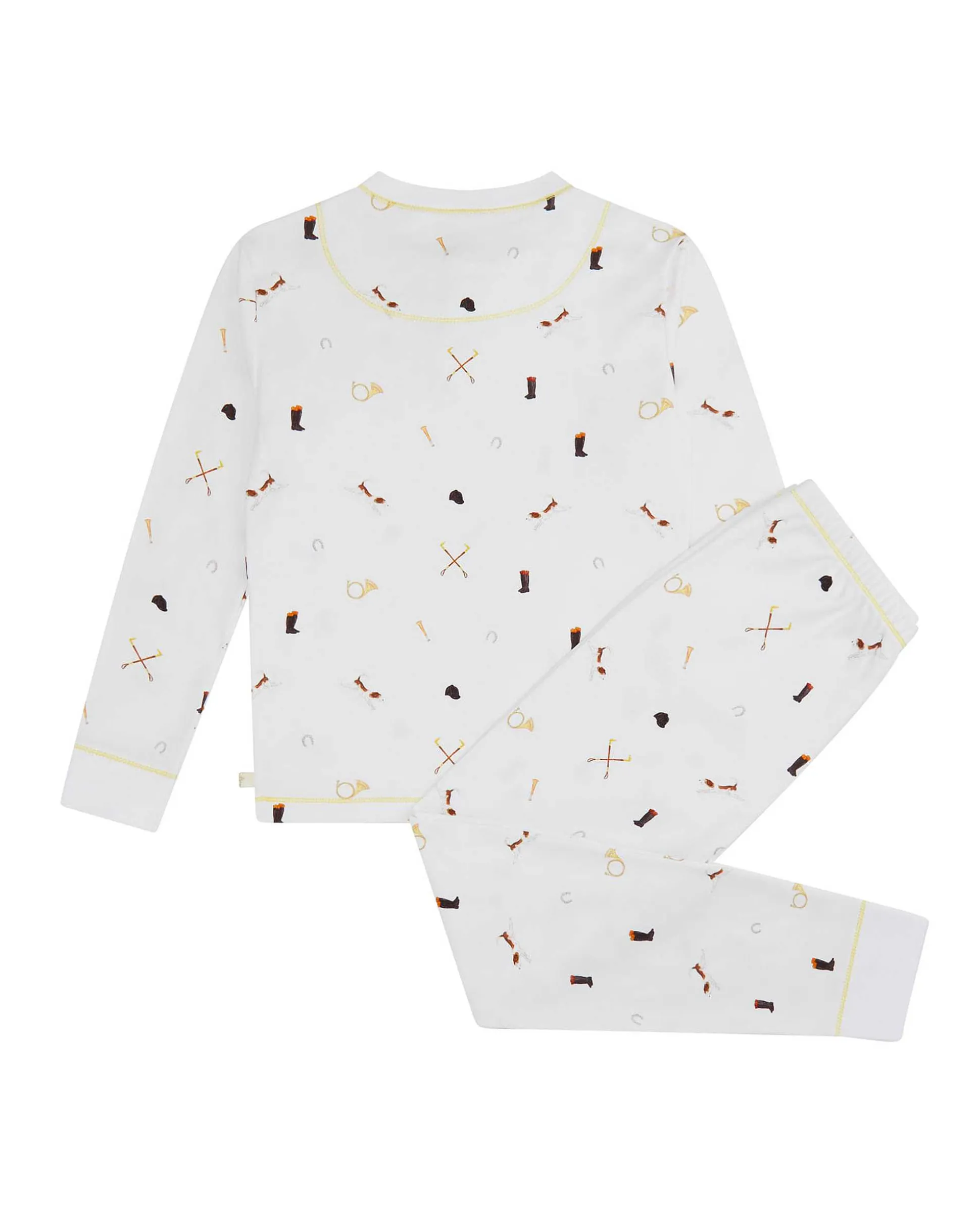 Meticulously Crafted In Our London Studio, These Precious Pyjamas Embody The Quintessential British Lifestyle. Adored With The Adorable Illustrations Of Riding Hats, Boots, Hounds And Polo Sticks. Designed With A Striking Yellow Trim, Our Round-Neck Pyjamas Are In Our Classic And Comfortable Fit And Made From The Softest Organic Cotton.