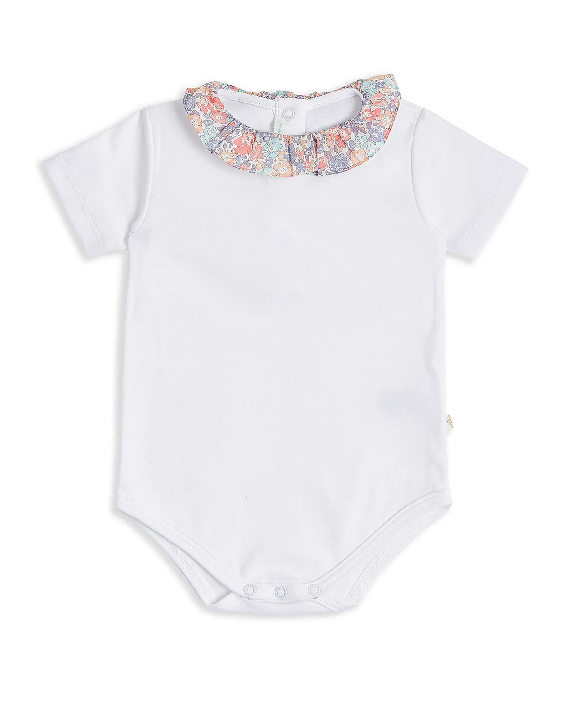 Perfect For Layering Under Rompers, Our Ruffle Collar Onesies Are A Signature Part Of The Mc Baby Collection. Made From The Finest Pima Cotton, It Has A Pretty Floral Liberty Print Collar And Press Studs For Easy Changing.