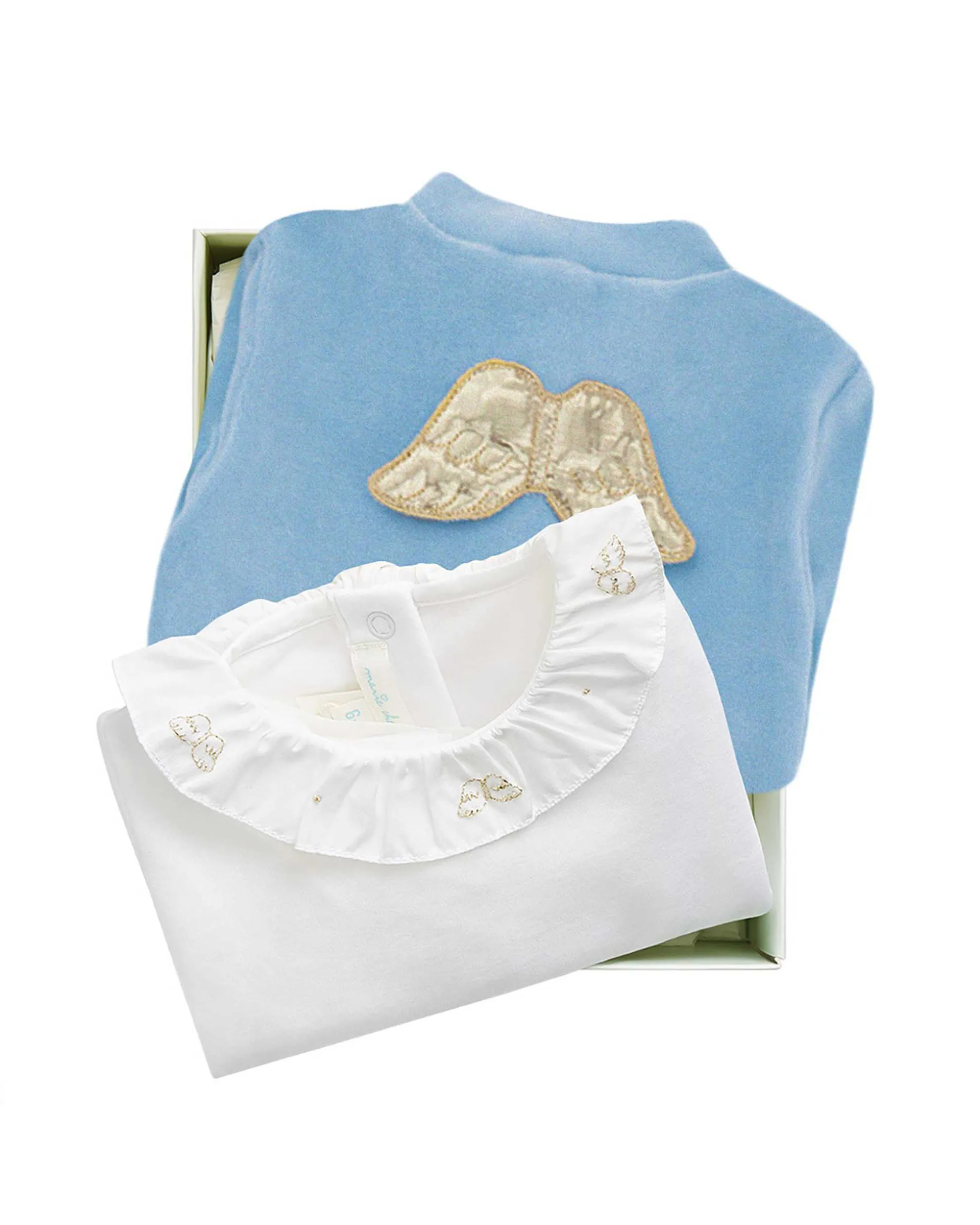 Our Soft And Delicately Embroidered Ruffle Collar Onesie Is Matched With Our Iconic Velour Angel Wing™ Sleepsuit To Create A Special Set For Newborns.