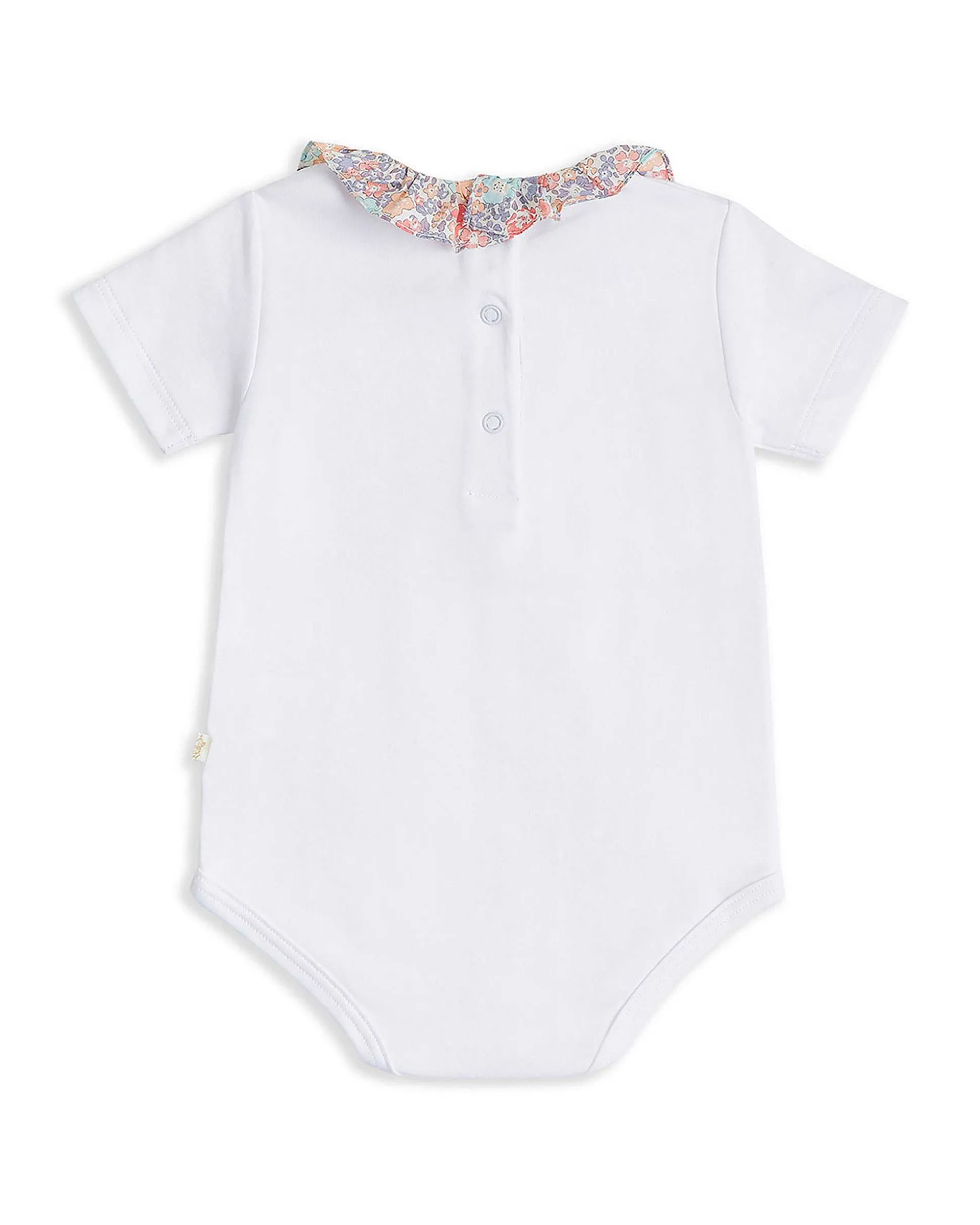 Perfect For Layering Under Rompers, Our Ruffle Collar Onesies Are A Signature Part Of The Mc Baby Collection. Made From The Finest Pima Cotton, It Has A Pretty Floral Liberty Print Collar And Press Studs For Easy Changing.