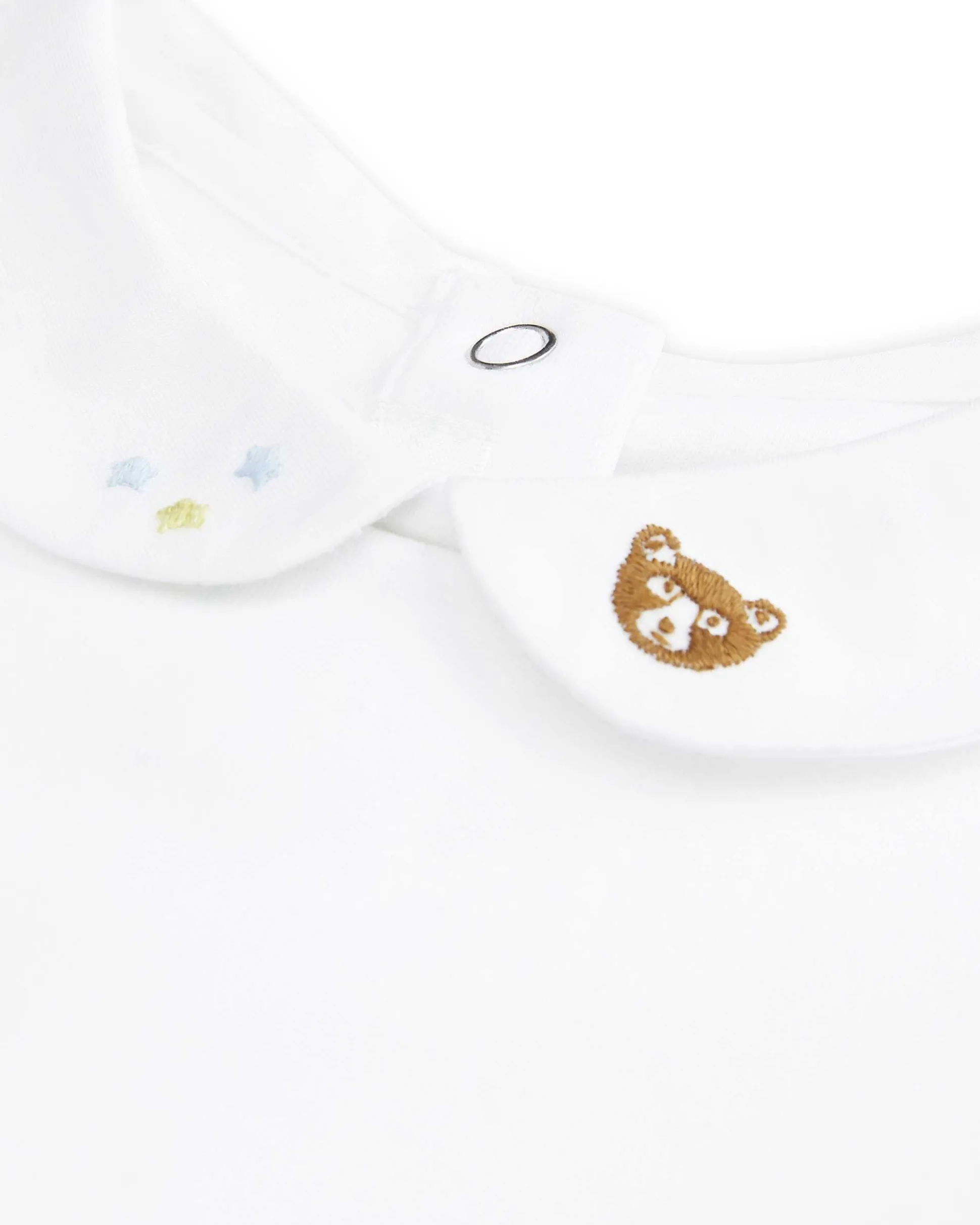 Another Cherish Edition To Our Embroidery Collar Onesie Collection. This Charming Essential Features The Most Adorable Little Bear And Star Embroidery Detailing On The Collar. Long Sleeves To Keep Baby Warm And Cosy, And Three Handy Buttons At The Back And Bottom For Easy Changing. Pair With One Of Our Mc Cashmere Rompers For A Classic And Timeless Look For Little One.